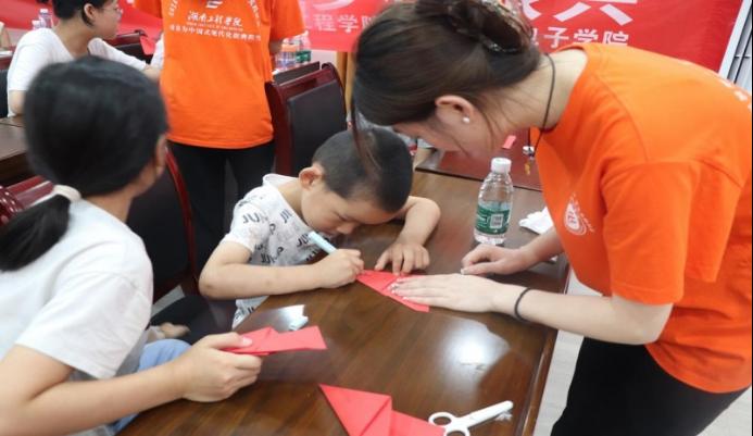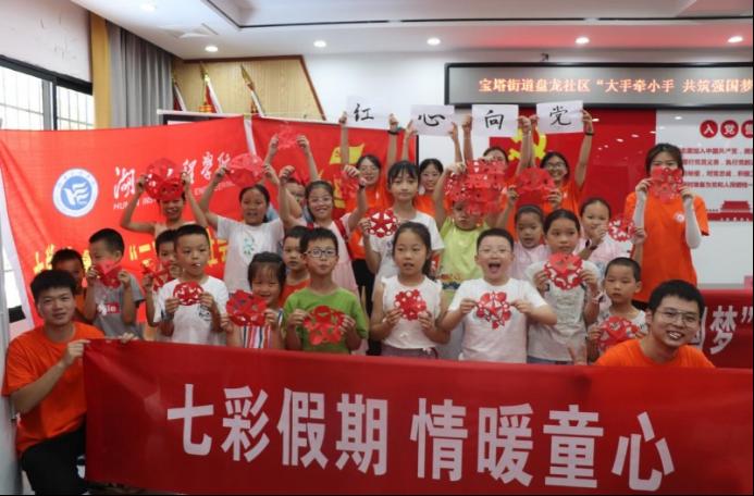 7月10日,英国上市公司365暑期三下乡“大手牵小手 共筑强国梦”中华文化传承团共25名师生在湘潭市岳塘区盘龙社区开展传统文化教育实践活动,精心设计课程内容,将剪纸、毛笔字这两项具有中华传统文化的艺术形式带入到课堂。
