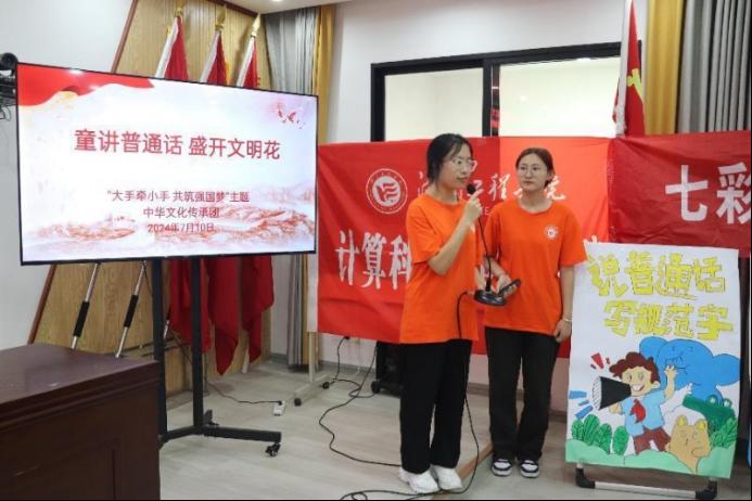 走访调研、红色课堂、诗歌朗诵、书法课堂、大合唱…实践团成员挖掘当地语言环境和普通话推广的结合点,精心开展普通话推广工作,营造良好的语言环境。