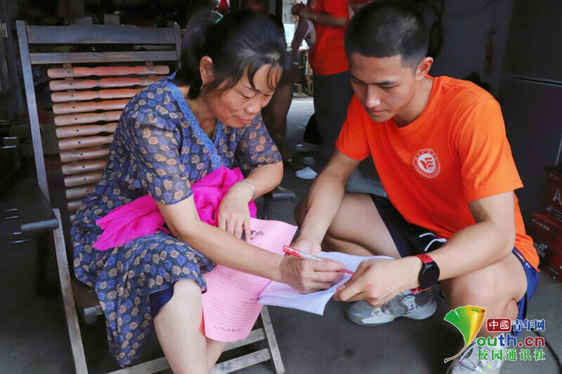 图为实践团成员向村民们进行乡村振兴背景下数字乡村建设的调研。中国青年网通讯员 李韩辉 摄